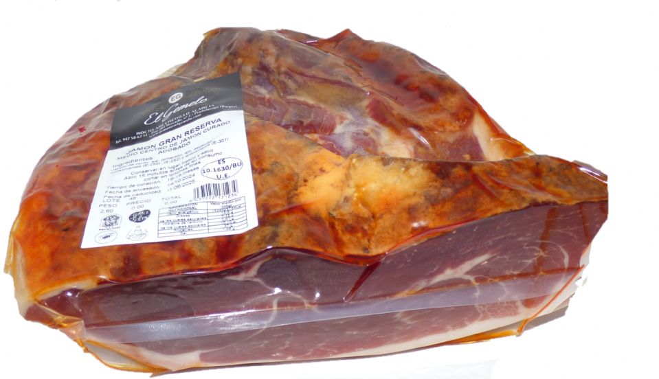 Se presentan en mitades de centro de jamón deshuesado. La parte superior del centro comprende desde el muñón hasta el centro. Y la parte inferior desde el centro hasta el final de la pieza.